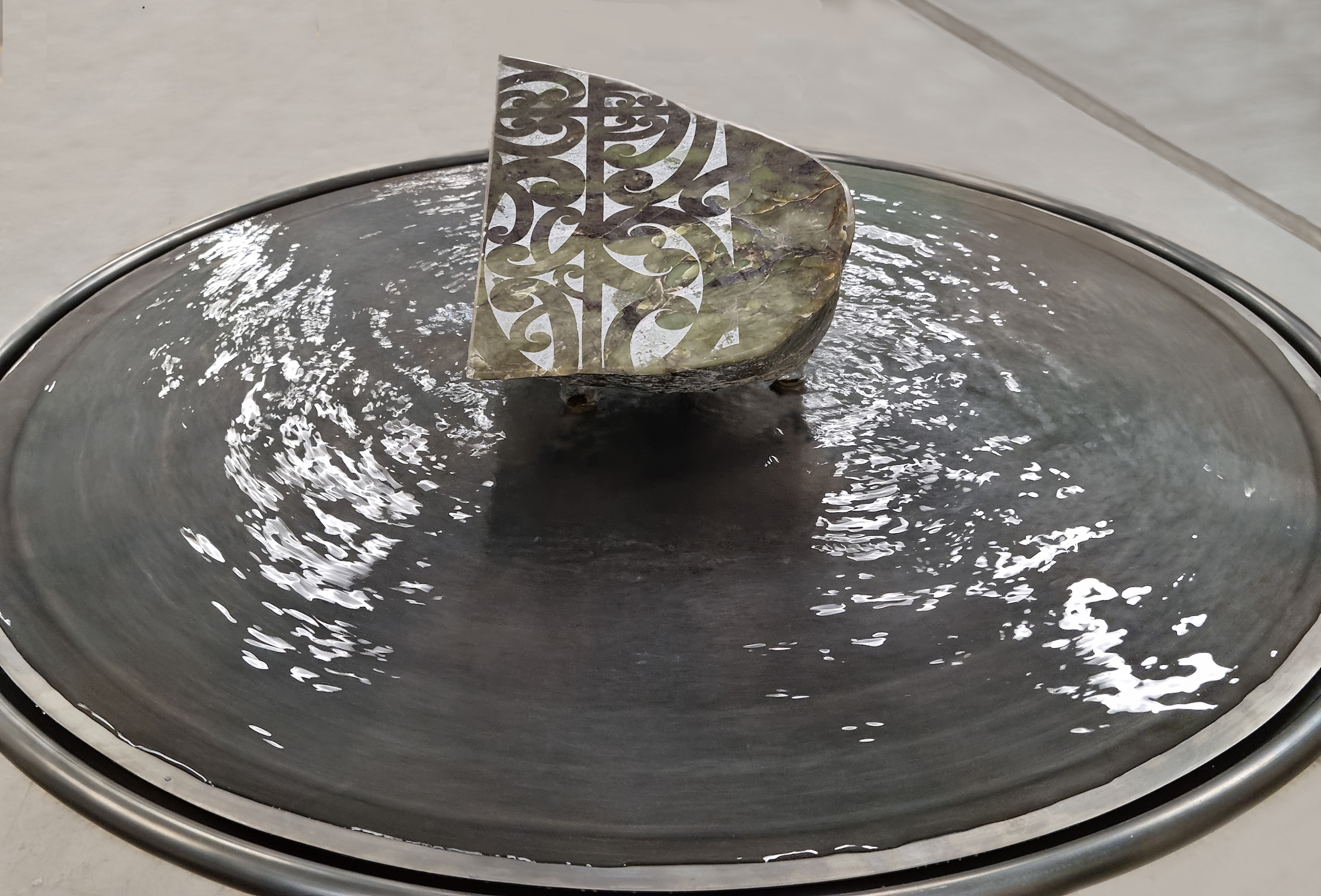 Wāhi Whakanoa - The pounamu touchstone is mounted in a custom Rippledish. Refer to 'Rippledish' page for further examples.
