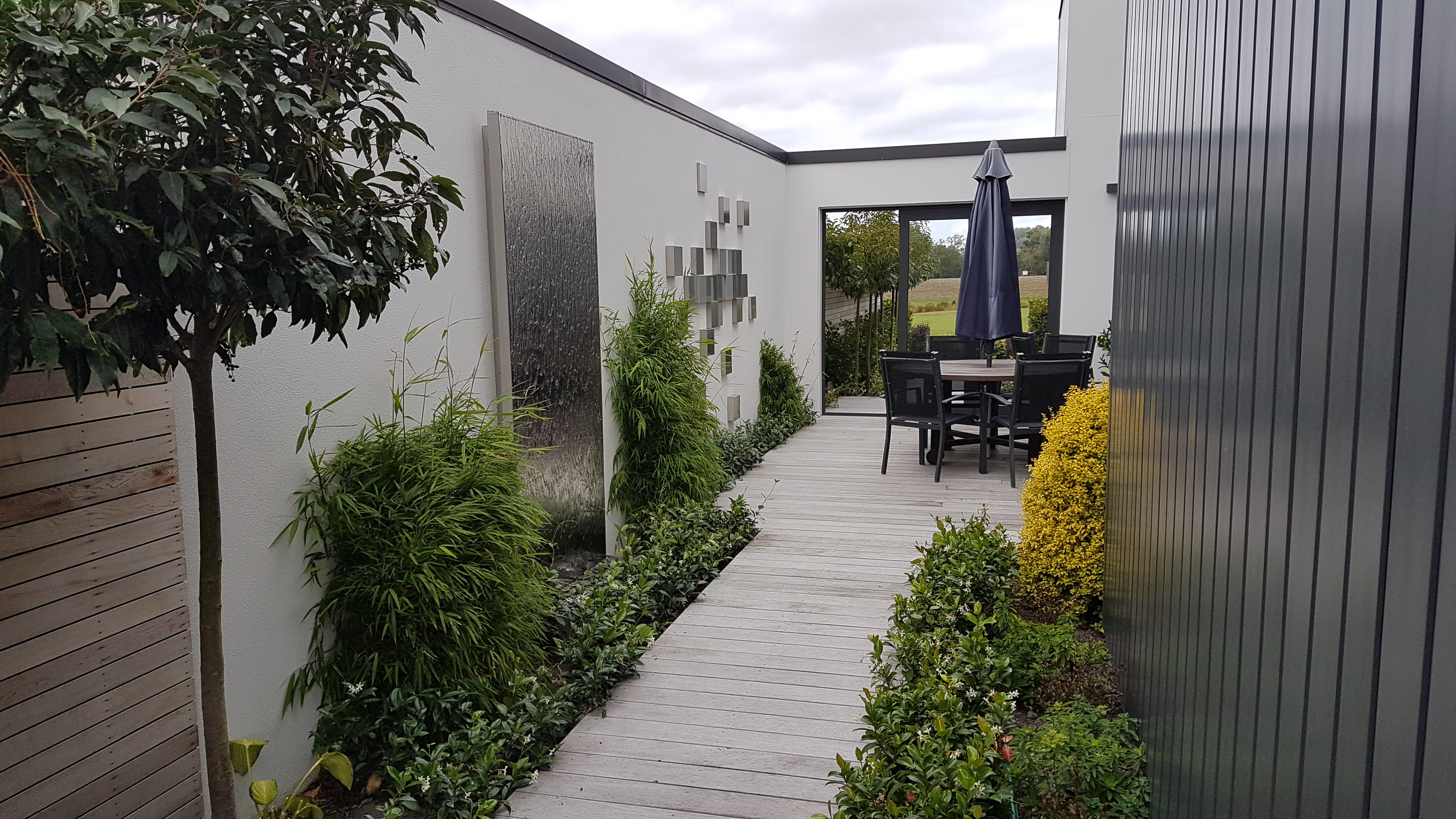 A simple corten steel pond with a shelf for birds to settle. Refer to Corten Steel portfolio for further examples.