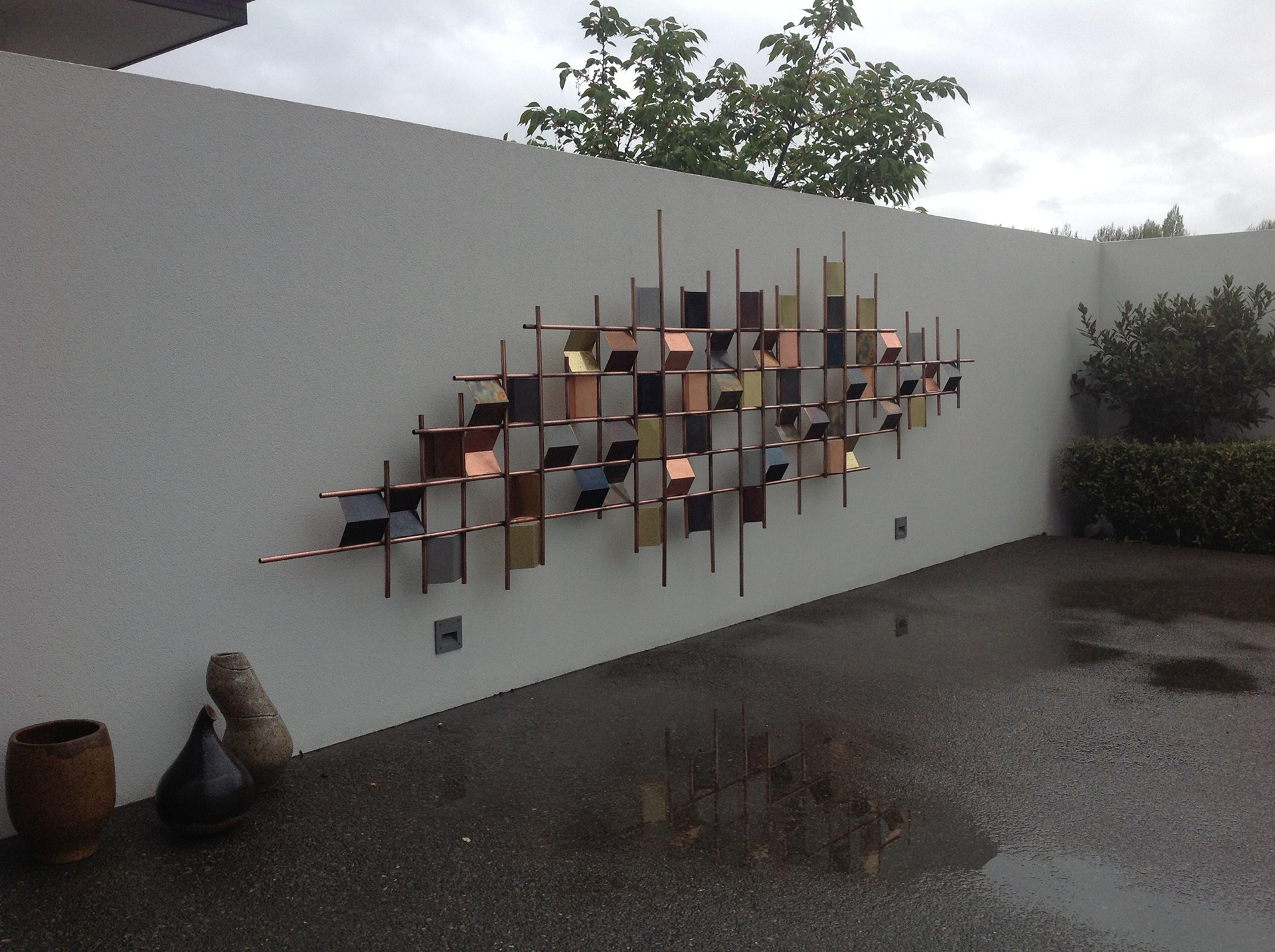 Bronzed copper wall sculpture