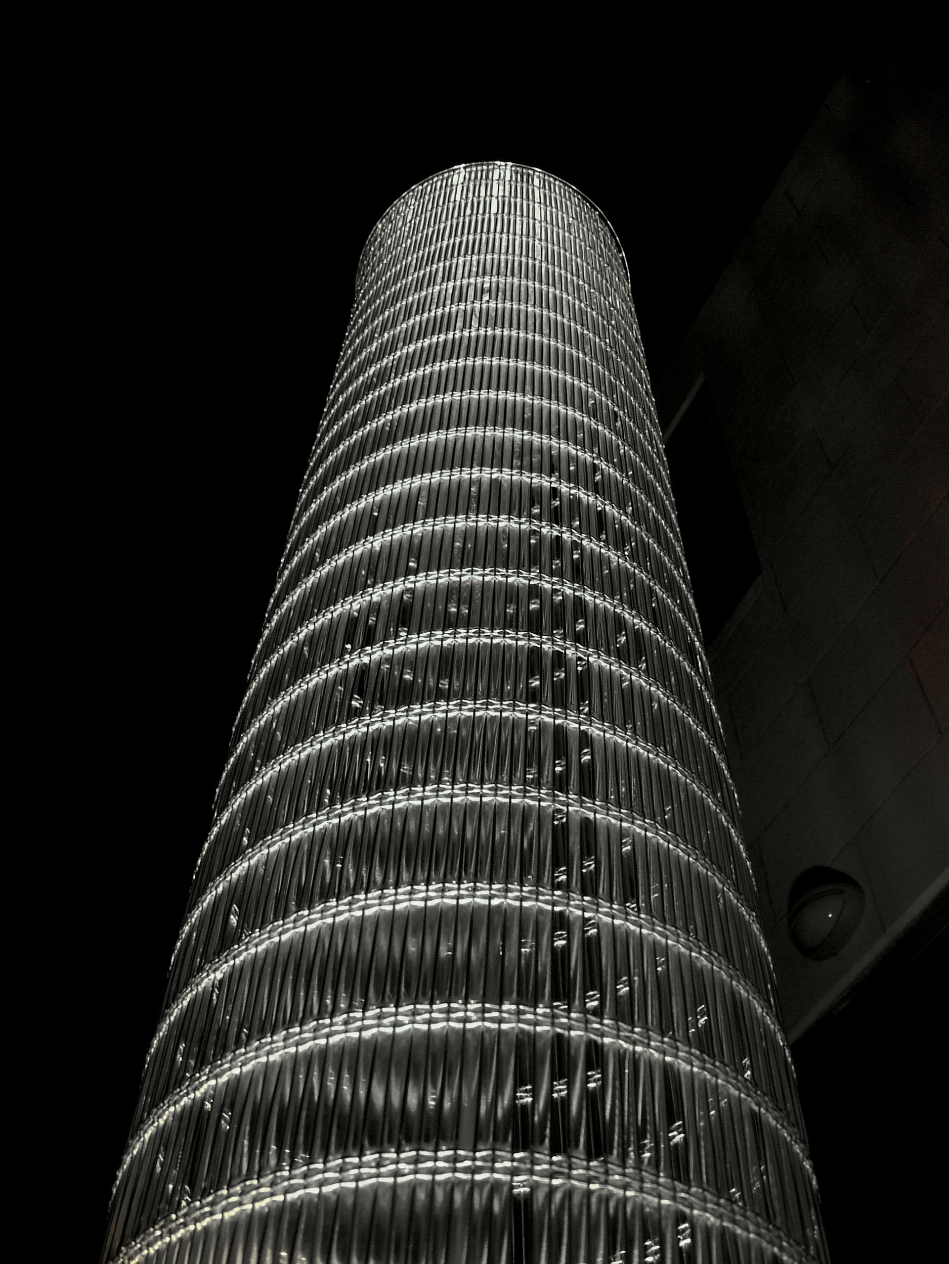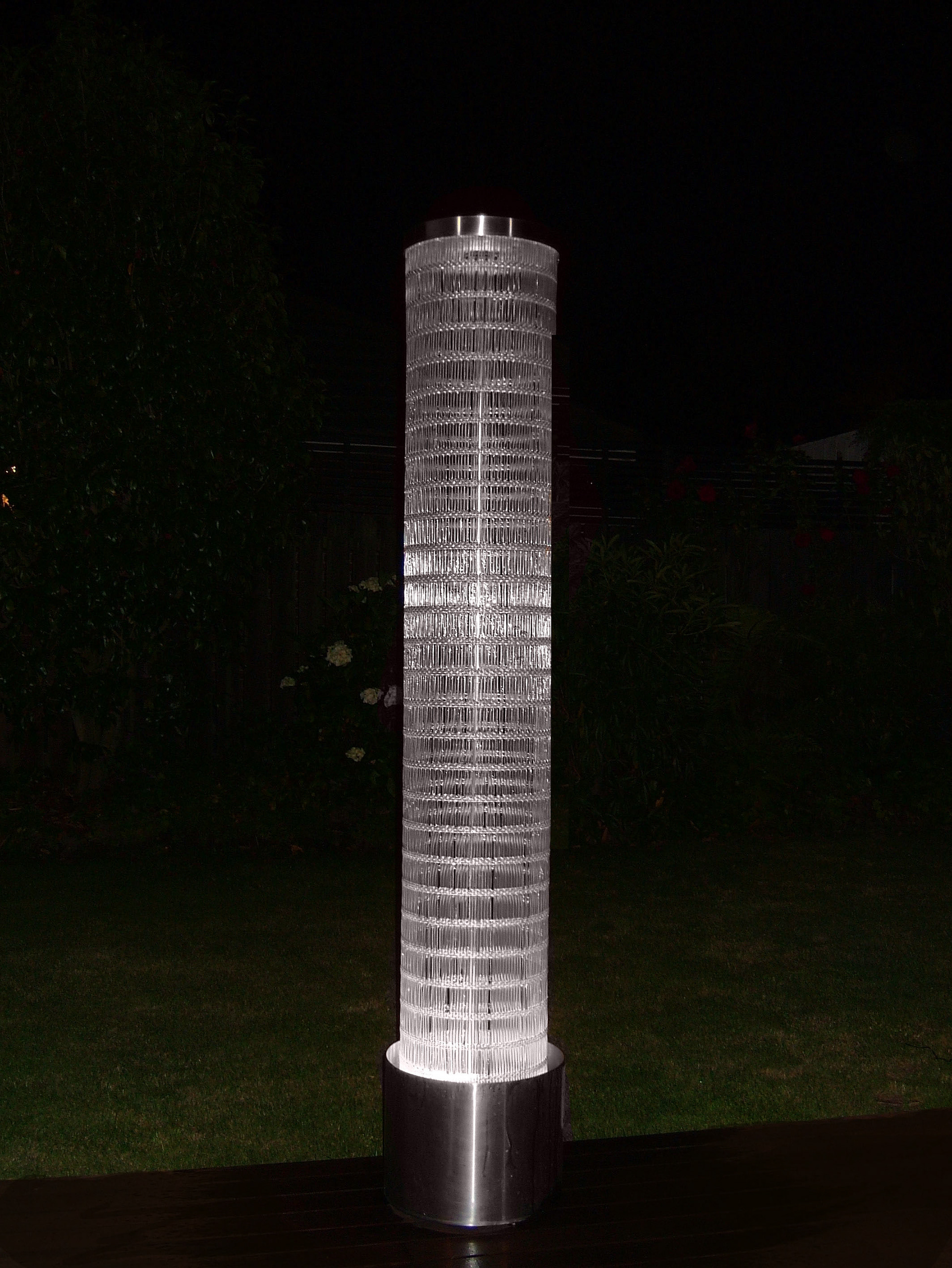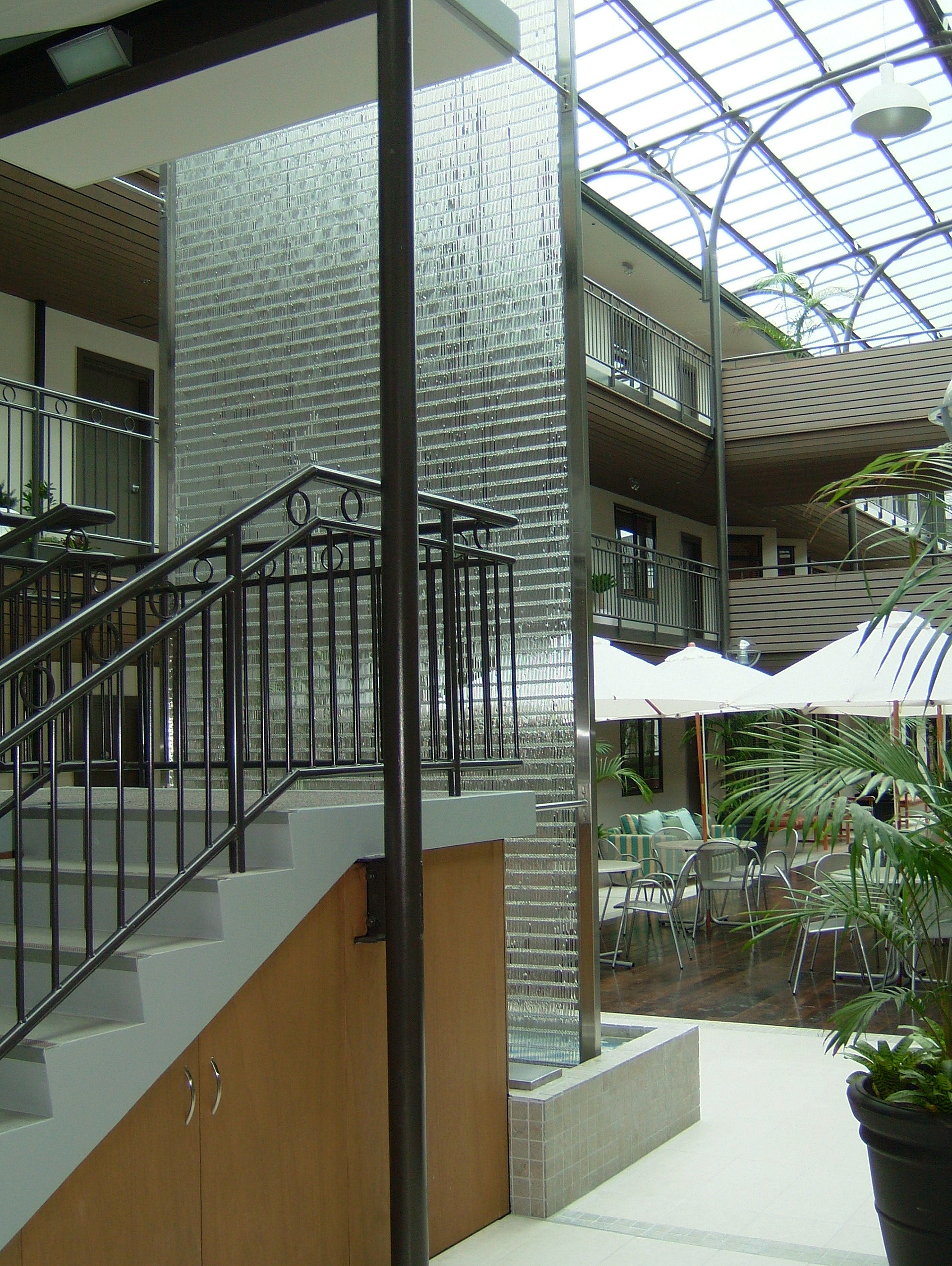These water features are formed from woven stainless steel mesh. Water adheres to the mesh forming a translucent film of shimmering light and water.