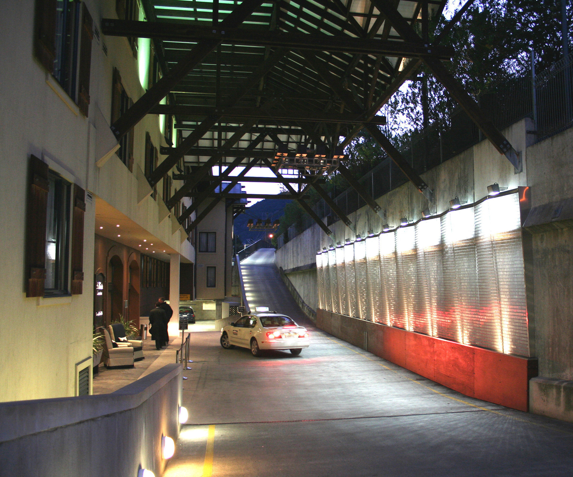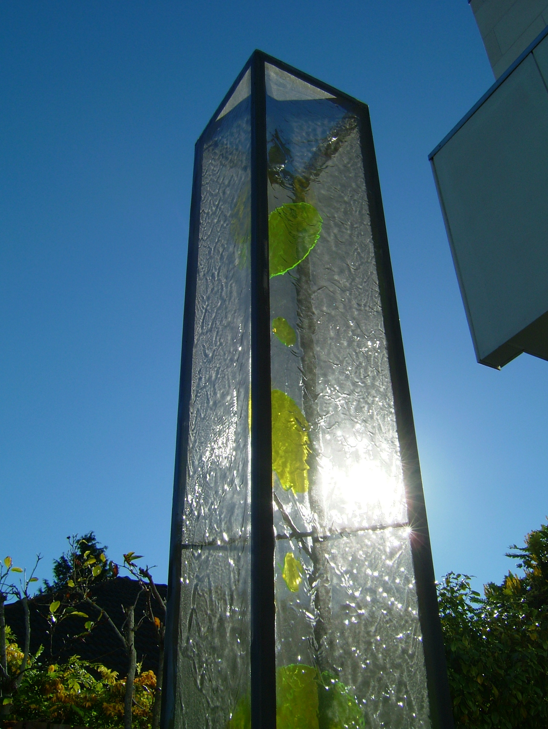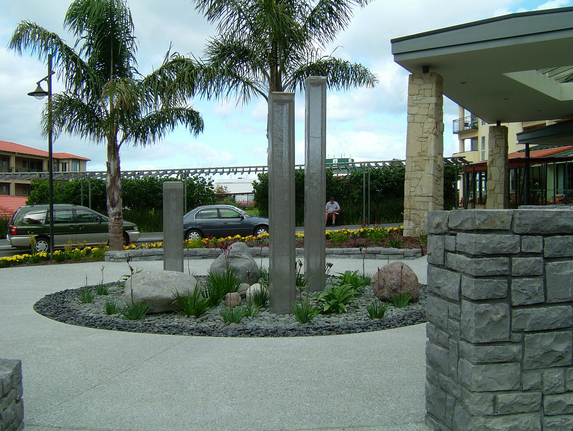 These water features are formed from woven stainless steel mesh. Water adheres to the mesh forming a translucent film of shimmering light and water.